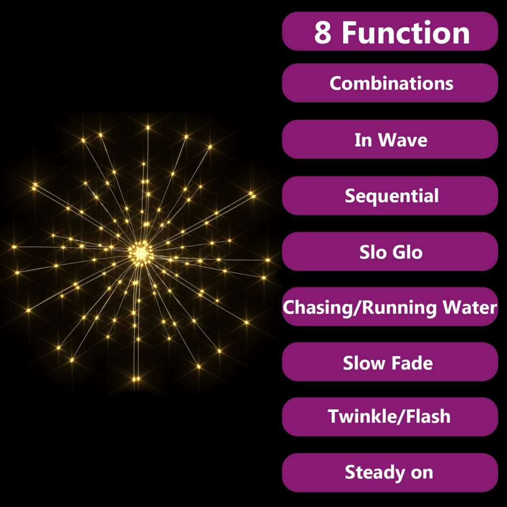 These modern starburst Christmas string lights are a brilliant decoration that adds warmth and charm to any place, whether inside or out. The fancy design and warm white glow make for a magical atmosphere, perfect for festive celebrations and special occasions.